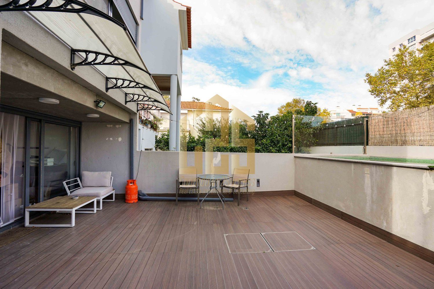 **Moradia Geminada T4/T5 em Santa Cruz, Benfica** Descubra a sua nova casa no coração do Bairro de Santa Cruz, em Benfica! Esta moradia geminada T4/T5 é perfeita para famílias que valorizam conforto e qualidade de vida. Composta por três pisos e um sótão aproveitado, oferece um espaço generoso de 325 m², ideal para criar memórias inesquecíveis. No piso inferior, encontra-se uma ampla garagem, uma lavandaria e um ginásio ou salão de inverno, além de um WC completo. O jardim exterior, com uma pequena piscina, é o local perfeito para relaxar nos dias ensolarados. O rés-do-chão apresenta um pátio exterior convidativo, um hall de entrada elegante, e uma sala e cozinha em open space que promovem a convivência familiar. Também há um WC de serviço e um espaço ideal para trabalho ou leitura. No primeiro andar, três quartos confortáveis esperam por si, dois deles com roupeiros embutidos. A suíte principal destaca-se com um closet espaçoso e uma varanda privativa, proporcionando um refúgio pessoal. O sótão elevado é um verdadeiro luxo, com um quarto principal que inclui uma suíte e mais roupeiros. Esta moradia foi remodelada por um arquiteto, utilizando materiais de excelente qualidade e equipamentos modernos, como ar condicionado em todos os andares. Localizada em uma zona ARU (Área de Reabilitação Urbana), está pronta a habitar e próxima a todos os serviços e comércio necessários para o dia a dia. Não perca a oportunidade de viver neste espaço único!
